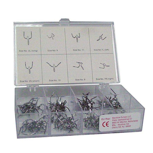 The Keystone Industries’ Clasp kit has all your needs with 12 each of various clasps. You get 96 total clasps. The clasps in the kit are: 2L, 2S, 7L, 7R, 8, 9, 10, and 11.