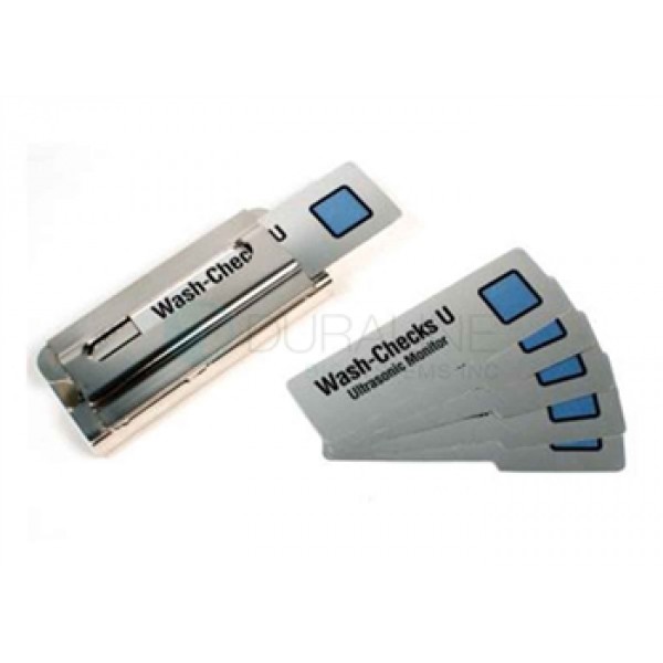 The WashChecks® U Monitors the Ultrasonic Cleaning Process. The test-soil is designed to parallel the removal of blood and tissue from surgical instruments. It is a multi-parameter test, monitoring: time, temperature, transducers, cavitation and detergent. 50 monitors per bag.
