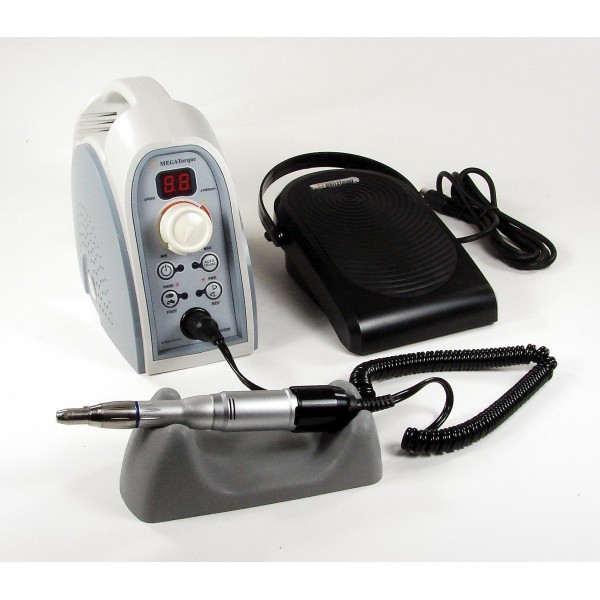 Mega-Torque Electric Lab Handpiece Set – High Quality, Modern durable Control Box, Deluxe high-torque 0-35,000rpm lab handpiece, and variable speed foot control pedal