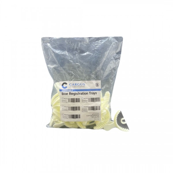 Cargus Disposable Bite Registration Trays are essential tools in dental procedures, featuring a sturdy plastic frame and thin, non-tear mesh for accurate impressions. Their full arch design ensures comprehensive coverage and compatibility, producing precise replicas of patients' teeth and soft tissue.