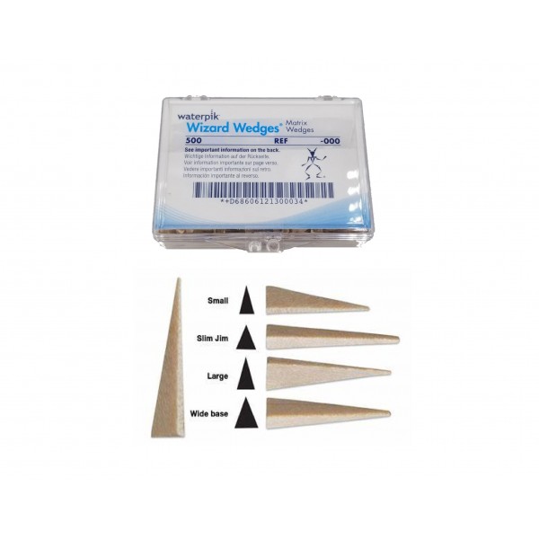 WaterPik Wizard Wedges Assorted Triangular Wooden Matrix Wedges (061215-000) are essential tools used in dental procedures for creating separation and achieving proper tooth isolation. This pack contains 500 wedges, ensuring an abundant supply for dental professionals.