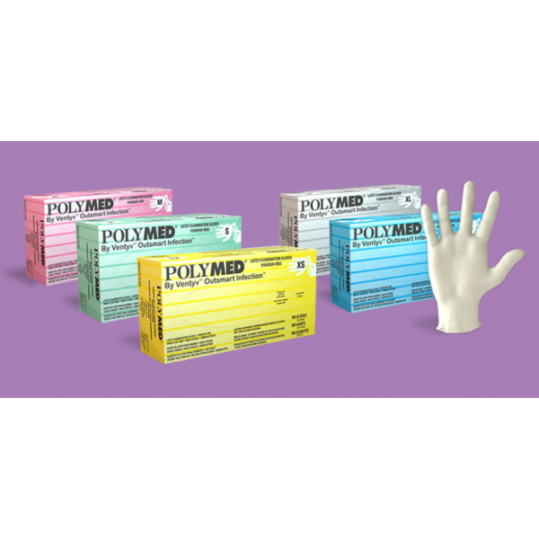 Polymed® is a powder-free, multi-layered latex glove that combines the elasticity of latex and the strength of copolymers. Fusion bonding protects these disposable medical gloves against cracking and peeling in normal use.