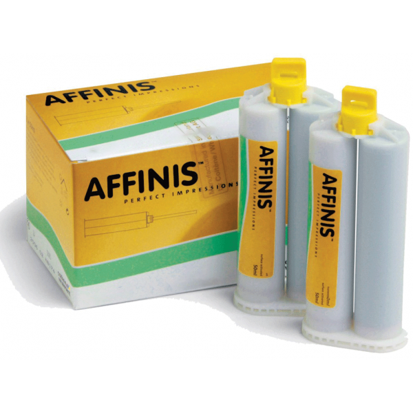 Affinis A-Silicone Material ensures excellently rapid yet effective wetting of the tooth and gingiva to produce perfect impressions that provide an accurate fit for restorations. The formulation has a cutting-edge surface affinity and thixotropic flow consistency that is self-contouring and non-slumping while guaranteeing no bubbles, voids, and distortions.