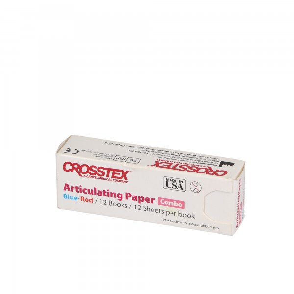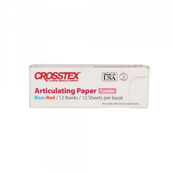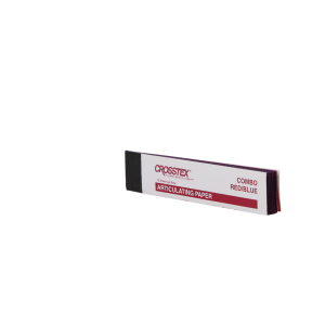 Articulating Paper uses a film-foil-paper combination and undergoes quality control to register precise occlusions, despite surface moisture levels. Articulating Strips come with color-coded text on the boxes to distinguish between the variations: thick, thin, extra thin, xx thin, straight, curved, curved with tabs, horseshoe.
