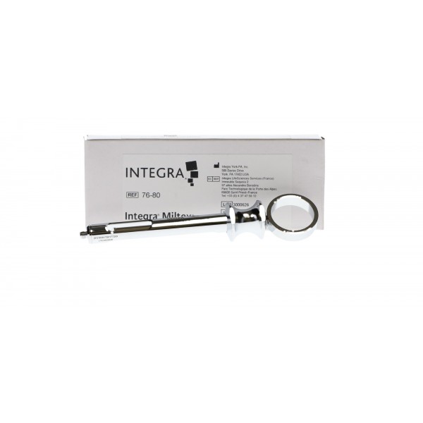 It features a thumb ring with a reduced handle diameter and a shortened harpoon rod for counter-pressure aspiration during the injection. The round-edged and oval-shaped ring handle fits the contours of the thumb for better control.
