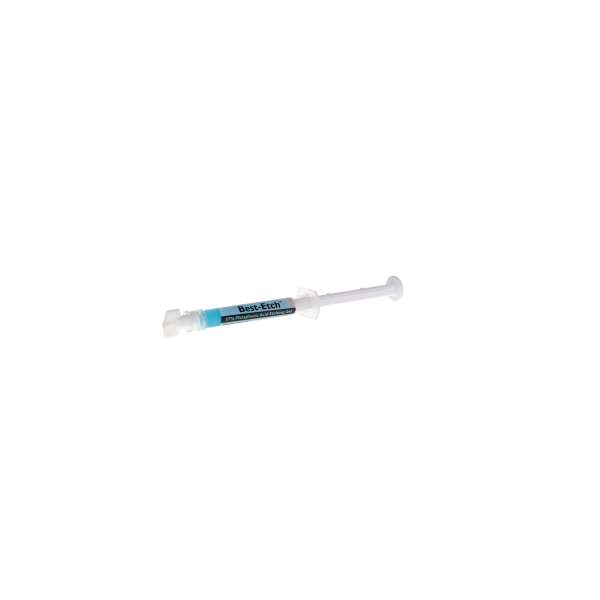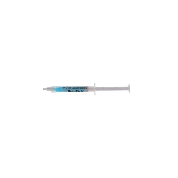 Best-Etch is an etching gel that contains 37% phosphoric acid indicated and applied on the dentin and enamel during dental restorations. The viscosity allows the material to stay in place, preventing it from flowing onto surrounding tissues.