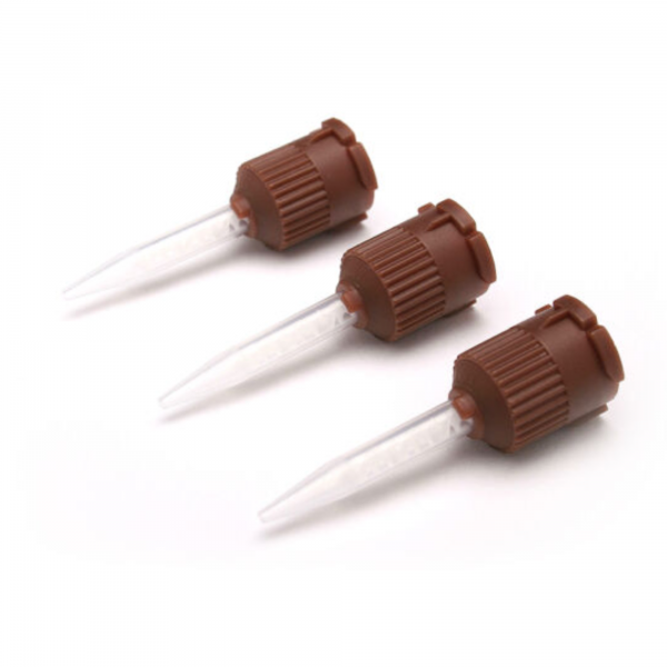 Implant Cement Automix Syringe Tips are brown mixing tips used for Implant Cement and NexTemp syringes.