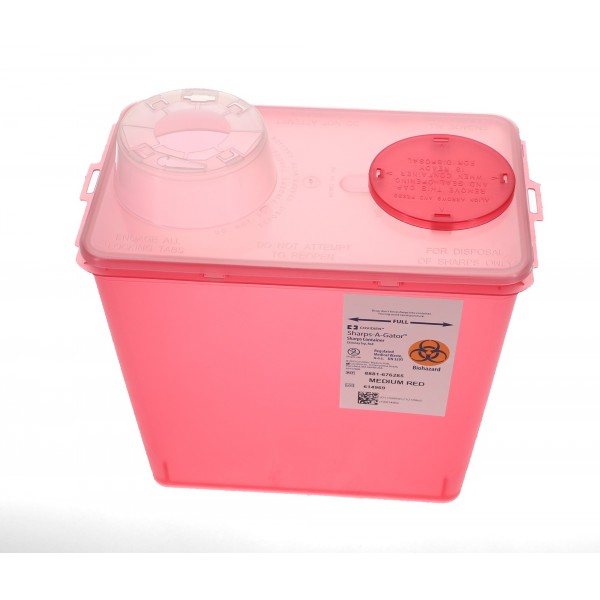 The Monoject Sharps Container features a translucent chimney top design that promotes easy identification of contents. It has fill-line indicators to prevent the loading of the container beyond recommended capacity.