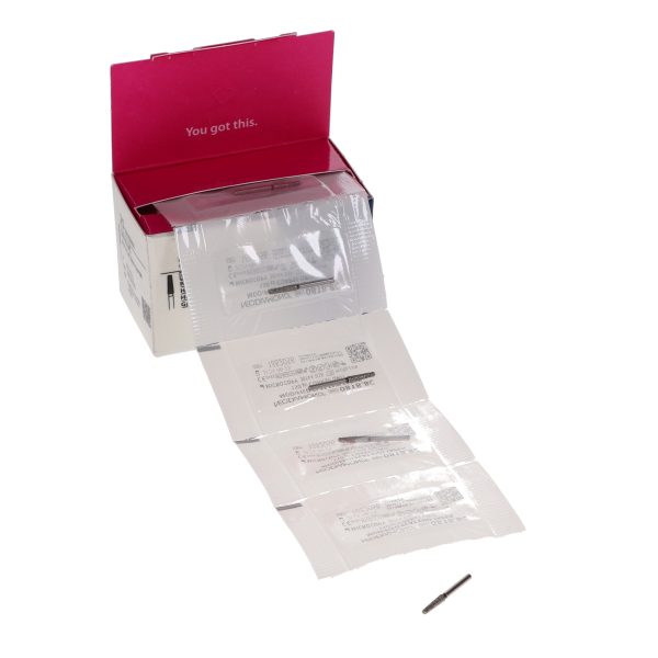 Each NeoDiamond comes in a clear and white, individually packed poly-packet classified according to diamond number, shape description, and grit #. The color-banded shank maintains integrity with its high-grade and heat-treated Swiss stainless-steel composition.