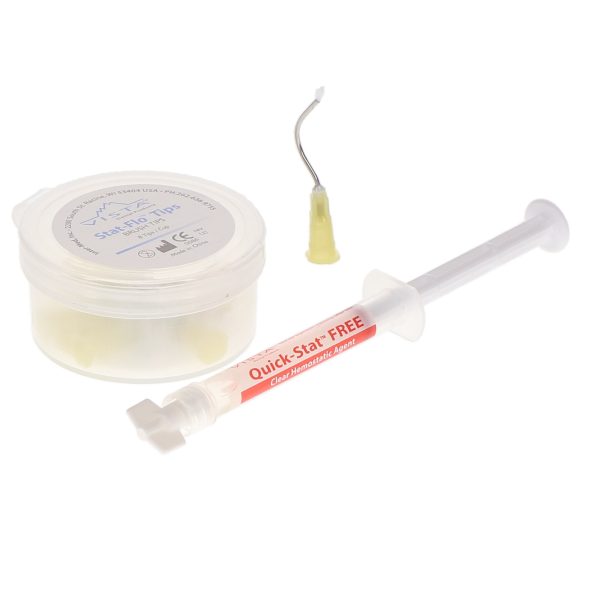 Quick-Stat FREE Clear Hemostatic Agent is the first of its kind to reduce hemostasis time by applying Astringent Hybrid Technology. Quick-Stat FREE includes a proprietary surfactant to penetrate more deeply and plug cut capillaries.