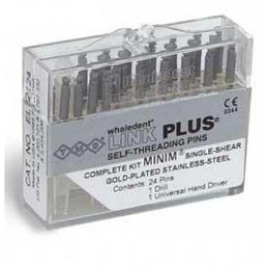 Thread Mate System (TMS) Link Plus are self-threading parapulpal pins made of alpha-beta titanium alloy or gold-plated stainless steel and specific for tooth restorations. Each pin features a shoulder stop for steady self-alignment during placement to the drilled channels and manual and mechanical insertion.