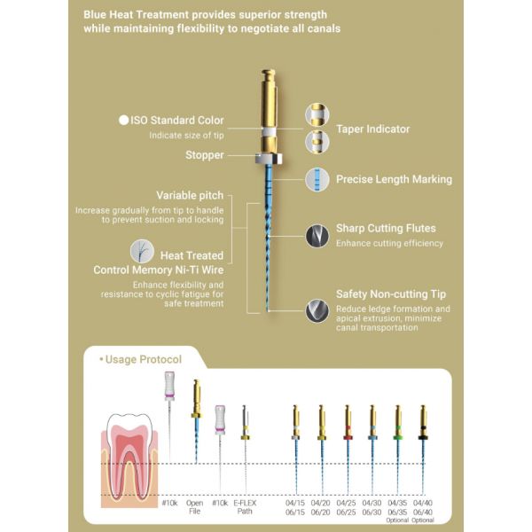 Blue Heat Treatment provides superior strength while maintaining flexibility to negotiate all canals