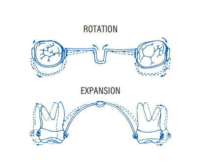 Mesial Loop Palatal bars allow controllable movements of rotation, expansion and contraction of upper first molars.