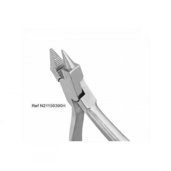 Bird Beak Pliers Heavy and Serrated Jaw, Fitted with Immunity-HS Tips Inserts are robust and versatile orthodontic tools. Their heavy and serrated jaw provides a firm and secure grip, ideal for manipulating thick wires and making bends that require greater force. The Immunity-HS tip inserts, on the other hand, offer a more delicate contact with orthodontic components, minimizing the risk of scratches or damage, especially useful when working with brackets or aesthetic accessories. The combination of strength and precision makes them useful for a variety of tasks, from archwire fabrication to the placement of attachments.