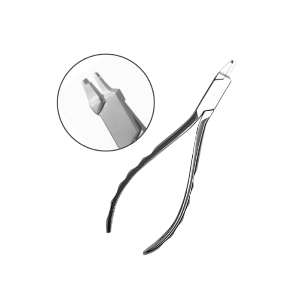 Places a V-Bend in archwires, including nickel titanium, to prevent archwire movement. For wires up to .021” x .025” (.53 mm x .64 mm) All working edges are beveled to prevent wire scoring