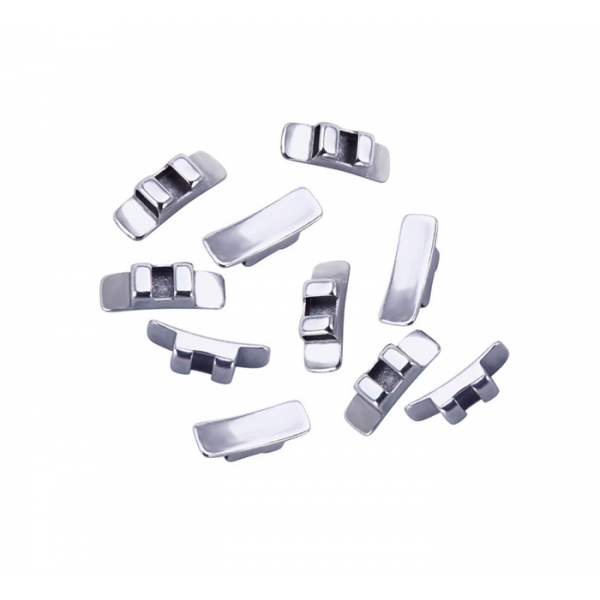 These orthodontic sheaths are used to create anchor points on the lingual surface of teeth, allowing for the attachment of lingual arches or other appliances. Their hookless design is specifically intended for welding, providing a secure and permanent fixation. The 10-piece pack is ideal for orthodontic procedures requiring customized lingual anchorage.