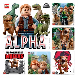 LEGO Jurassic World. 6 assorted designs. Sticker size: 2.5" x 2.5" each. 100 assorted per roll.