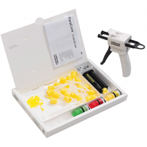 Dual-cured, glass-reinforced composite resin, radiopaque composite system. The well-known 3-in-1 material simplifies the post & core restorative technique.